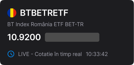 BT Romania ETF is an exchange-traded fund that tracks the performance of the BET-TR index and is managed by BT Asset Management SAI S.A., ASF Registration No.: PJR05SAIR/120016. Before making an investment decision, please review the prospectus and key information documents.